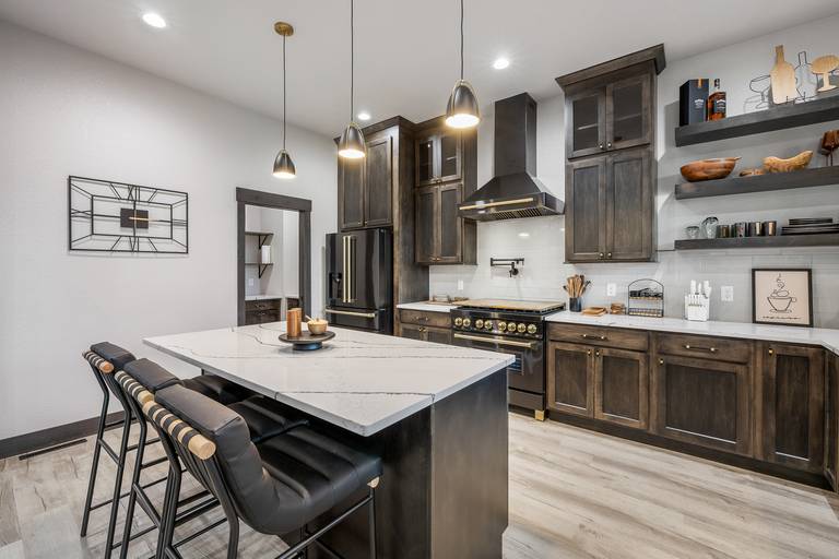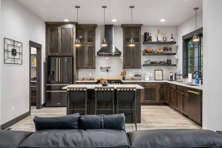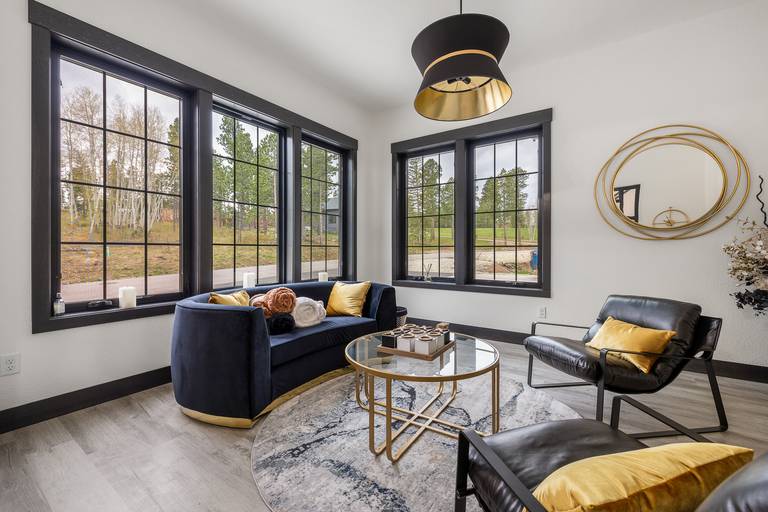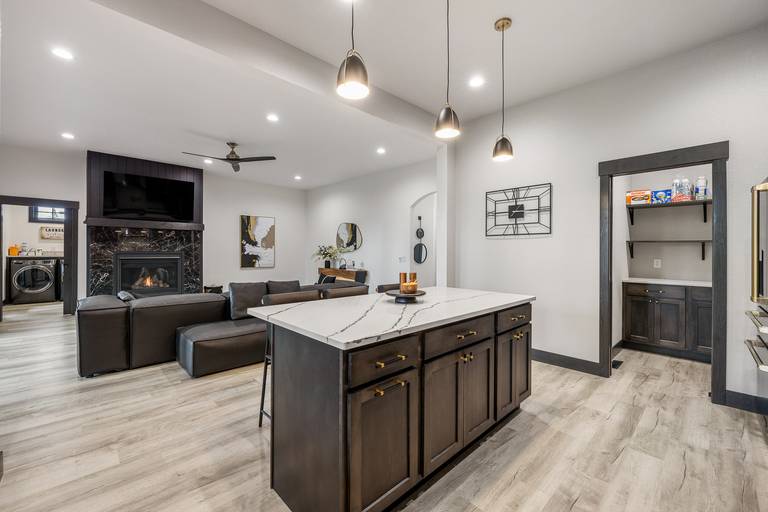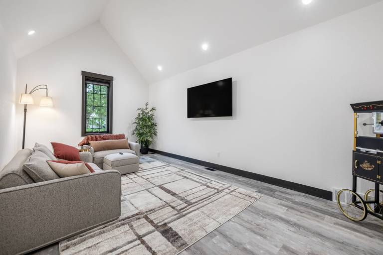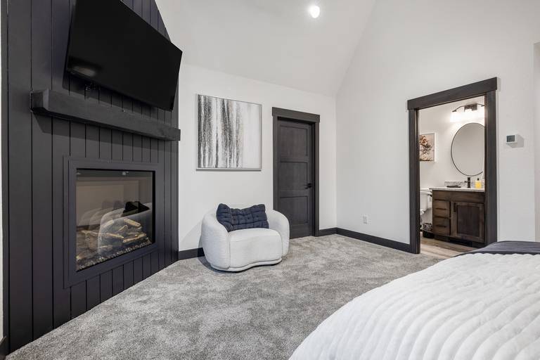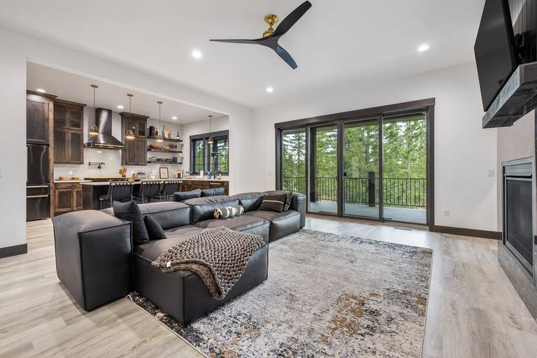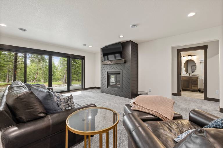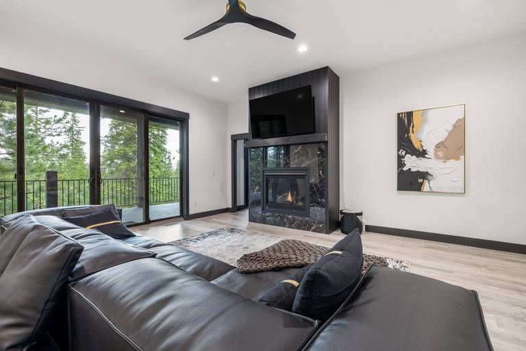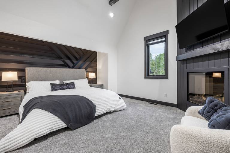 Spread out across three beautifully finished levels, you’ll find three cozy living areas, two gas fireplaces, and an electric fireplace, creating the perfect mountain ambiance no matter the season. Whether you’re relaxing after a day on the trails or gathered for a movie night, smart TVs throughout the home (with private TVs in 3 of the bedrooms) ensure everyone is entertained. You’ll even find a Bluetooth Turtlebox speaker to keep your music going from inside to the outdoor patio.