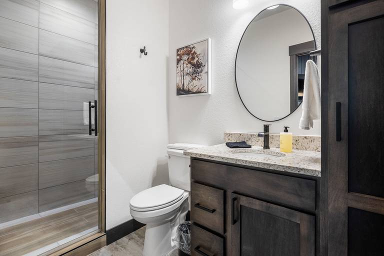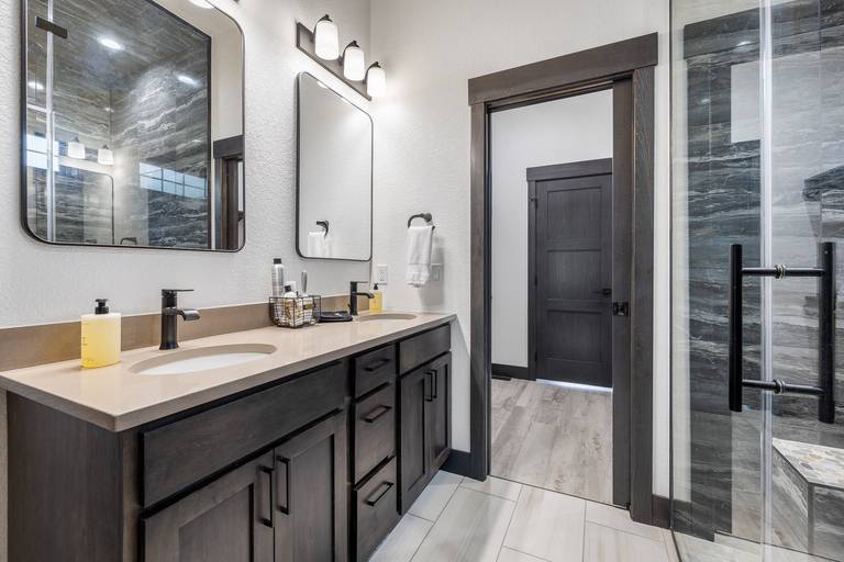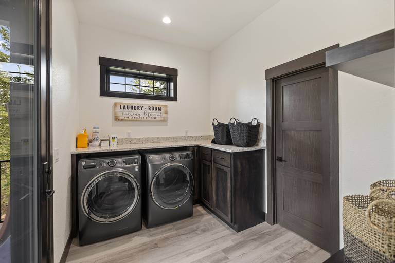 The master bedroom is a standout feature, offering a truly unique steam shower experience—ideal for unwinding after a day of exploring the Black Hills. The home also includes central air with multi-level zone control to keep everyone comfortable year-round, and two full laundry rooms for added convenience on longer stays.