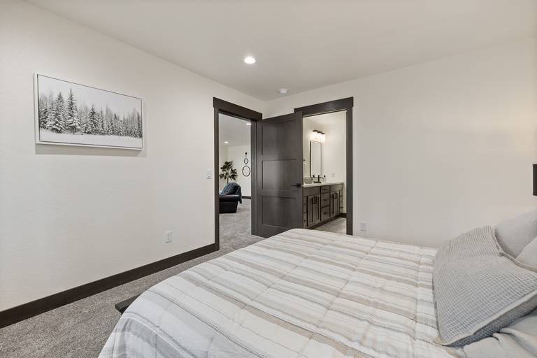 Bedroom 6 - Lower Level - Queen bed and bathroom in adjacent hallway