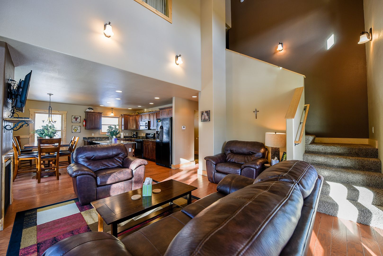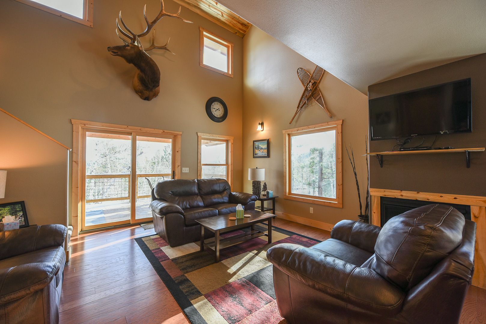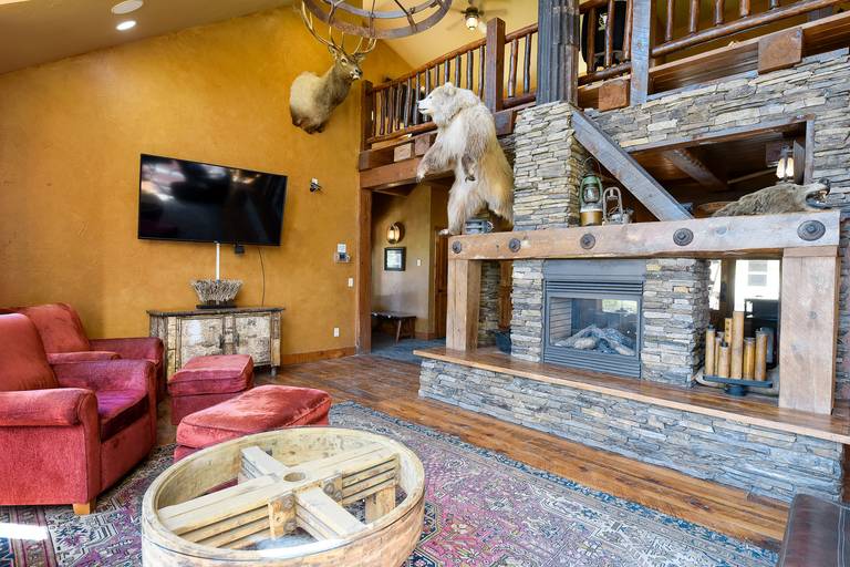 The 6 Bedrooms have 6 Queen Beds plus 4 Twin-Size Beds - plenty of space of all your friends and family joining you on your next vacation. The Main Level Coach House has an open Kitchen/Dining/Great Room with Gas Fireplace. The Loft includes a Master Bedroom with Private Deck. The Lower Level of Cabin has a Large Family Room w/ Gas Fireplace, Wet-Bar, along with Walk-Out Patio & Hot Tub (just a few steps to the Swimming Pool at the Clubhouse) Hardwood Flooring & Custom Tile throughout the property and includes Flat Screen TV's, Central Air Conditioning, and laundry area so you can enjoy all the amenities from home.