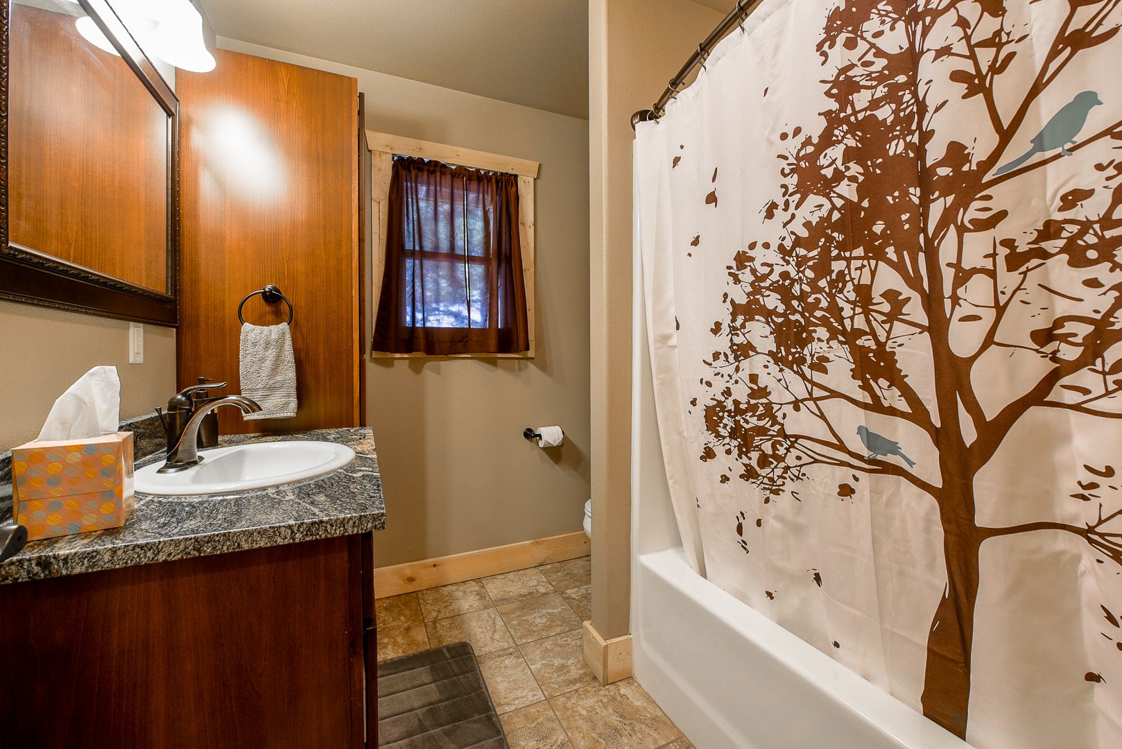 Few concerns<br/>Shower curtain liners should be replaced grimmy on the bottom.<br/>Had to vacuum the rug as it looked as though had not been done before our arrival<br/>Overall the cabin was in good shape could do with some repairs on the wall and painting.<br/>Furniture worn.<br/>Hot tub had an odor besides the chemicals<br/><br/>Was allowed to check in early which was great.