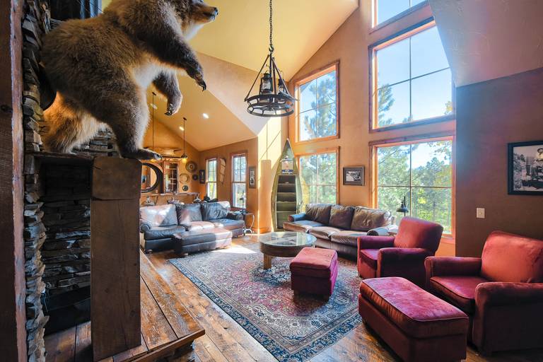 Are you looking for your next larger home to enjoy with your comrades? Look no further than the Coach House. This mining themed vacation home is the perfect place to kick your feet up after a long day exploring the black hills or on the local ATV/Snowmobile/Ski trails. There's so much do nearby, enjoying the amenities of this home will be welcomed. This 6 bedroom, 3-Level, Custom-Built Black Hills Cabin, is within walking distance to the clubhouse heated swimming pool. Located Southwest of Terry Peak, you can be skiing in minutes! You can also access the local ATV/Snowmobile Trails & Mickelson Trail just on the other side of HWY 14 - You can ride your ATV's directly to the trails!!