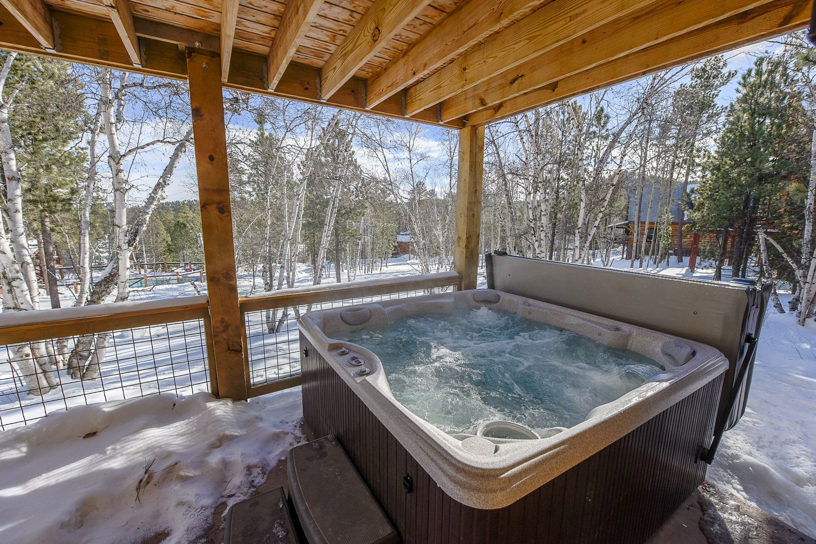 We really enjoyed our stay at the house. It was located in a great area; close to skiing and Deadwood. <br/>We walked out the back door to the main club house and really enjoyed using the heated pool and sauna. Even better was the good sized hot tub connected to the house on the lower back patio.
