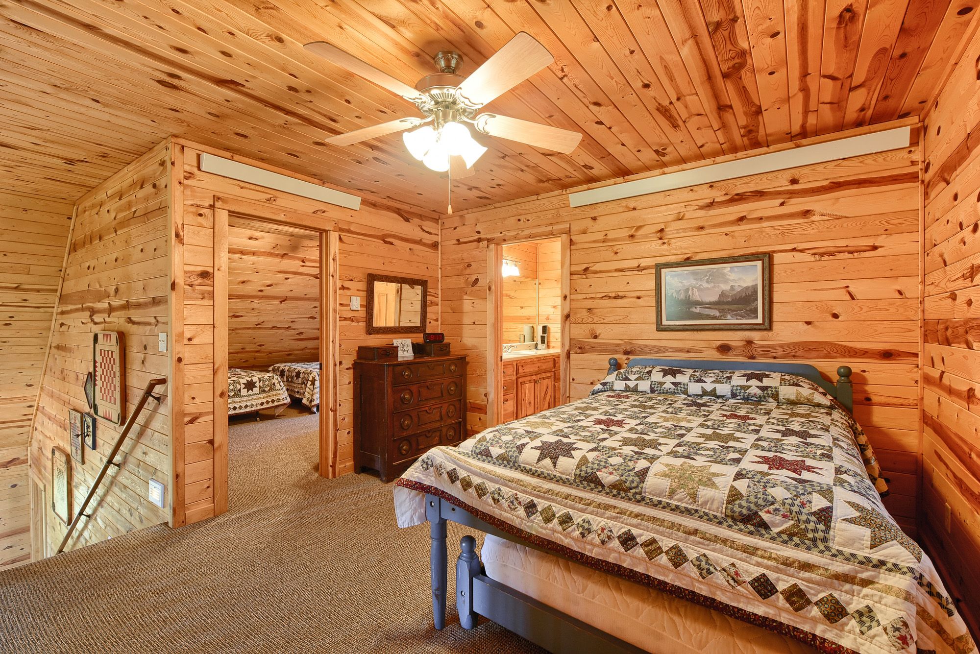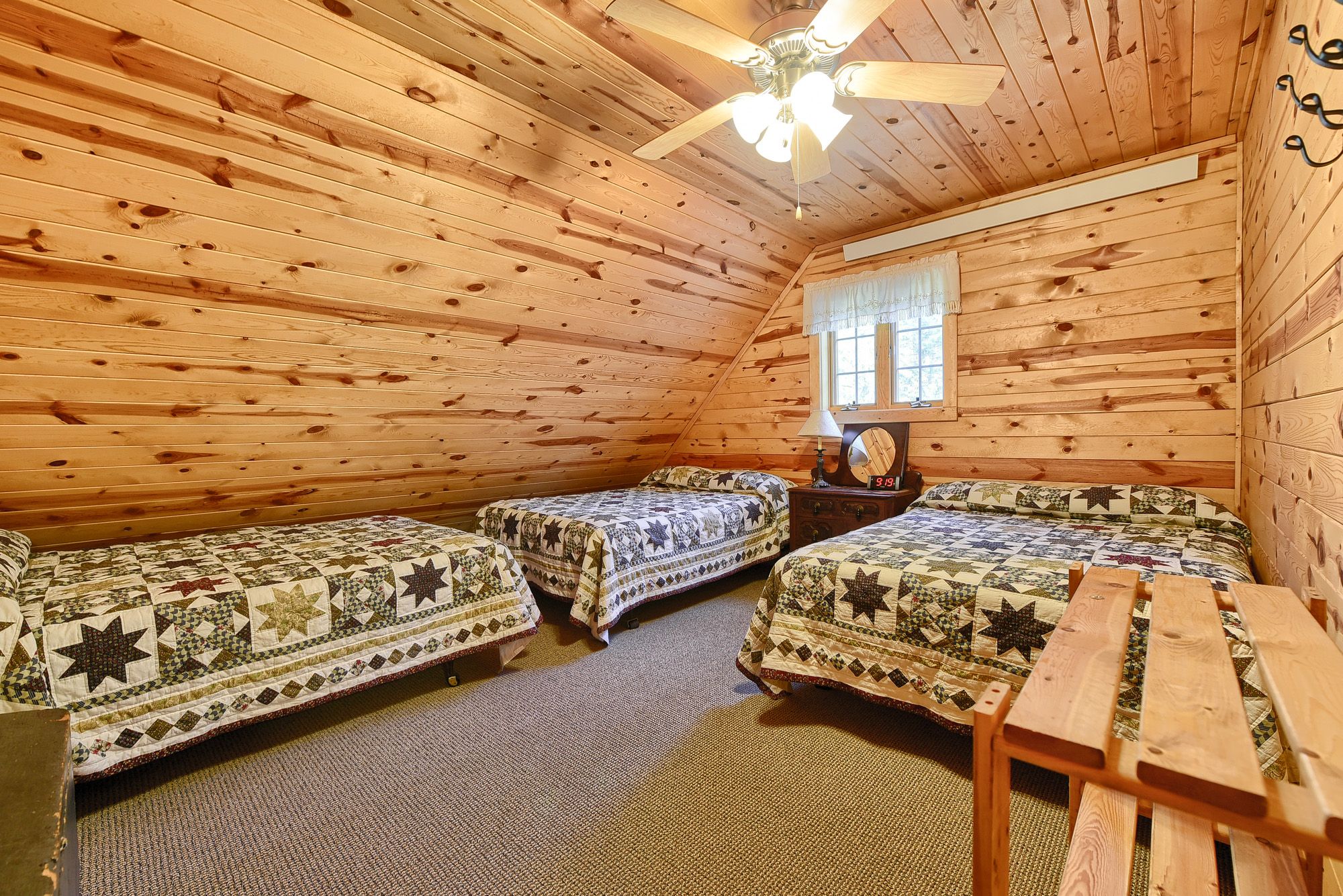 After taking in the sites you'll love coming home to this cabin sanctuary. You'll enjoy the local wildlife roaming through the yard, the beautiful starry skies, wind blowing through the ponderosa pines all while you take it in from the new hot tub! A gas fire pit and gas heater (on deck) also brings you to enjoy the outdoors at this wonderful cabin. The log cabin and alluring wood accents will have you loving the cozy feel, while you cuddle up and kick your feet up by the fire while you enjoy your company. The open concept makes it easy to gather with your family & friends and make new memories. With 2 bedrooms and an open loft used as a bedroom, there's enough room to spread out for smaller groups and 6 total beds if you plan to travel with some family/friends. There's a king bed in the main floor master bedroom, 3 full beds in the bunk room, and 2 twin beds in the loft. The living room opens up into the deck area where you're surrounding by pine trees and can enjoy grilling out and laughing with your friends. Finally, you'll enjoy the garage to store your motorcycles, ATVs, and snowmobiles when you're relaxing at the cabin. With all of these amenities, you'll enjoy the convenience to local adventures and have a great place to come back to. Make your next trip to the Black Hills a memorable one - we welcome you to your next favorite cabin.
