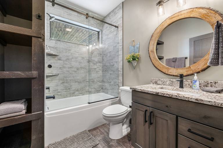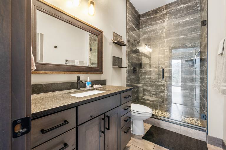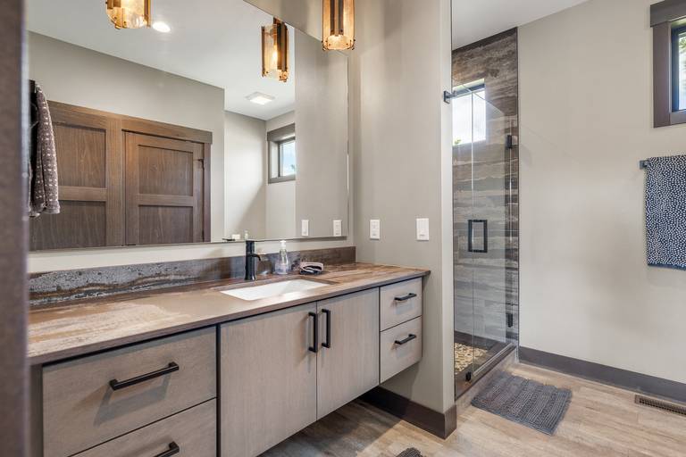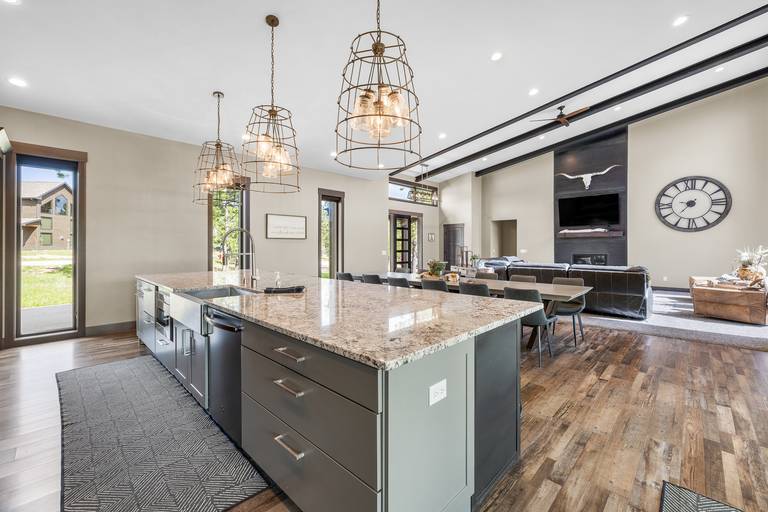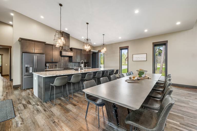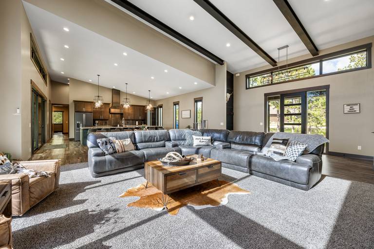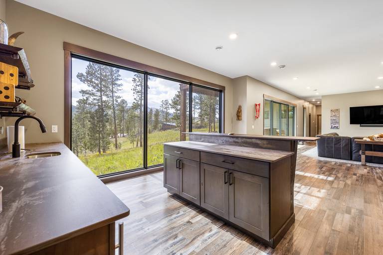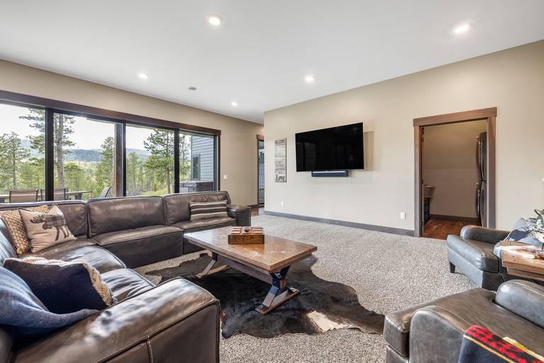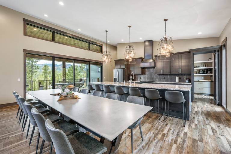 Reviewed on 2021-08-20 by , Bismarck, ND United StatesWe booked this vacation home to celebrate a 50th wedding anniversary. Our party included four couples and eleven children. The gathering areas were large and accommodating of groups. The living room had plenty of comfortable seating and the kitchen and dining area could seat us all. The work space in the kitchen was large enough for us to be able to prepare meals without getting in each other's way too much. The second fridge in the pantry was perfect for drinks. The downstairs was a hit with the kids. There was so much for them to do and room for them to spread out. The bedrooms and bathrooms were plentiful and slept us all comfortably. The mattresses were very comfortable. Getting ready in the mornings didn't take long because of all the showers available. We never had an issue with running out of hot water with our large group. The floor to ceiling windows offer stunning views of the hills. We had so many things we wanted to do and see in the hills, but it was always hard leaving the house. We would have been perfectly content relaxing with those views every day. The owners have obviously put a lot of care into making this house everything you look for in a vacation home. The only downside of our stay was that one of the bedrooms was warm at night and we tried opening the window to let in some cool air, but the window was broken and we were unable to close it again. Maintenance came the next day and got it closed for us, but we were unable to use the window for the rest of our stay. Also, this is the second home we have rented in Powder House Pass and neither house was very clean. Floors were sticky and the carpets didn't appear to have been vacuumed. I would like to see cleaning services improved. All in all, this house is amazing and we can't wait to come back.