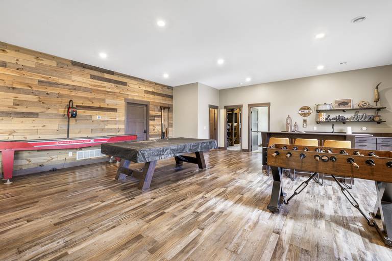 Reviewed on 2021-08-10 by Jamie M. , Corning , IA USDon't hesitate - you will love this property! We were very pleased with this home. It is suitable for an adult group or a group with families. We were very surprised how well equipped the kitchen amenities were! There wasn't anything we were lacking to find. The game room with the bar down stairs was fantastic. We really loved having 2 sets of washers and dryers. The extra garage space was a huge bonus for our group. The location is perfect with it being not too far from town. I would definitely recommend this property!