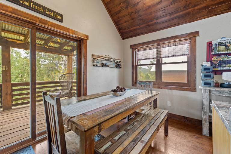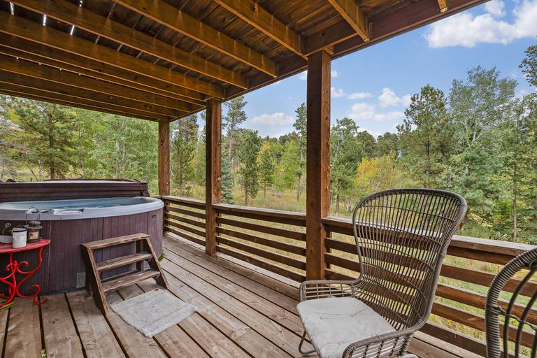 Reviewed on 2018-06-24 by Ellen K. , Colorado Springs , CO United StatesOur stay was wonderful! The cabin was absolutely beautiful. My husband and I stayed with my parents, and with his sister, her husband and their two young children. It was a perfect size for all of us to stay and, the accommodations were gorgeous. We ran the Deadwood Half Marathon so the hot tub was relaxing and peaceful after the race - just what we needed. We would love to come back again!