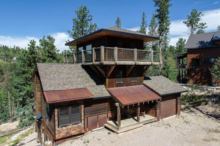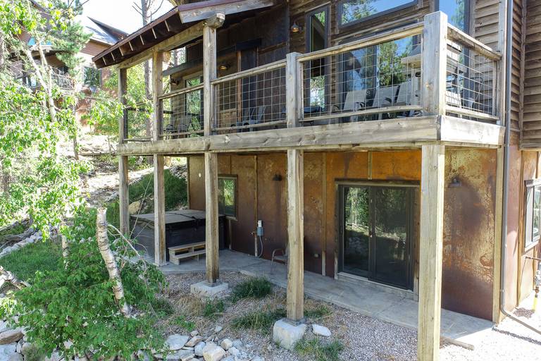 Reviewed on 2021-05-19 by John D. , Sioux Center, IA United StatesWe have stayed at a number of different houses/cabins at Terry Peak. This is my favorite!! Rustic look but a very modern cabin fully equipped and very family friendly. Two of our favorite things was the third level game room - shuffleboard and Pac Man/Donkey Kong video games as well as a TV. This was a great place for grandkids to hang out. My favorite part of the house was the fourth floor master suite with a wrap around balcony, lots of windows, and an incredible view. Great to sit outside in the morning as the sun came up and watch the world come alive. There is also a smaller TV/living room area downstairs. Full size hot tub! We had a great stay and I would definitely rent this one again.