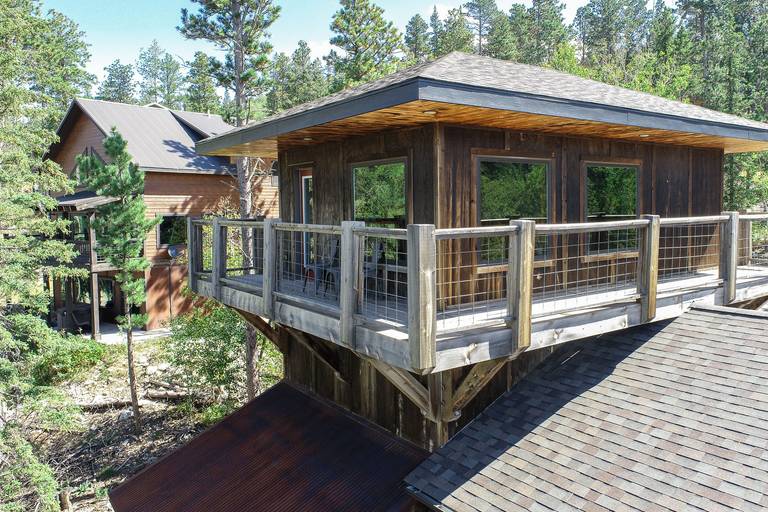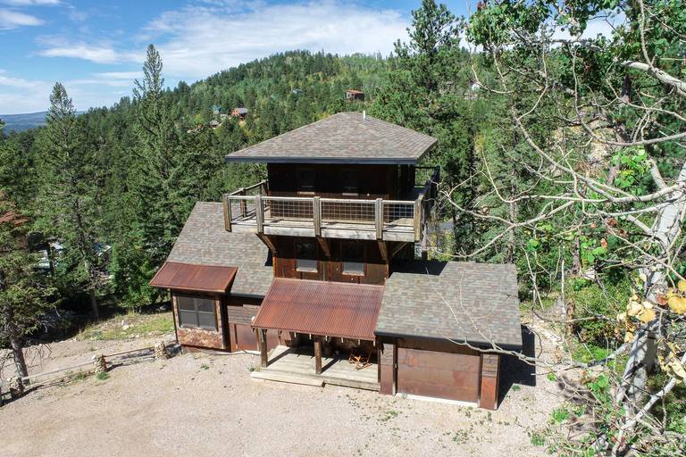 Welcome to your new favorite Black Hills vacation home named Jug House Lookout. This truly unique cabin offers a one-of-a-kind experience near Terry Peak. The 4th floor tower has some amazing views of the surrounding hills and valley below! The covered hot tub offers a great spot to also take in the amazing view from the cabin and local wildlife. With very easy proximity to the Terry Peak Stewart Lodge, which is just down the road, you can be skiing to your heart’s desire in no time! The Mickelson trail and many other ATV/snowmobile trails are within 10 minutes away, and some ATV trails can even be accessed right from the subdivision. Spearfish Canyon with its great fishing/waterfalls/hiking is only a short 15 minutes away. Downtown Deadwood is also just a short 15-minute drive or taxi ride full of places to gamble, great restaurants, and many festivals throughout the year! Within an hour’s drive from the cabin you can also be enjoying Custer State Park, Mount Rushmore, Keystone, Sylvan Lake or other central Black Hills attractions. Whether you've come to visit to enjoy an adventure filled getaway, a sight-seeing tour of the area, or a relaxing weekend enjoying the view from the tower, Jug House Lookout is surely going to make for a memory filled home-away-from-home.