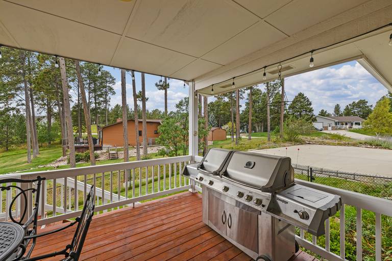 The oversized 3-car garage isn’t just for vehicles—it doubles as a game zone complete with an air hockey table and foosball. Step outside to the covered deck where you can grill your favorite meals on the gas grill, unwind around the propane fire-table, and take in the stunning Black Hills scenery.