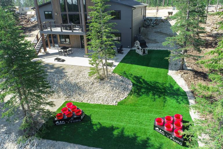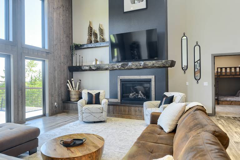 The oversized heated garage will also become a favorite gathering space since it is well stocked with a bar table, tools for keeping your rigs on the trails, outdoor games and an oversized double door display fridge.