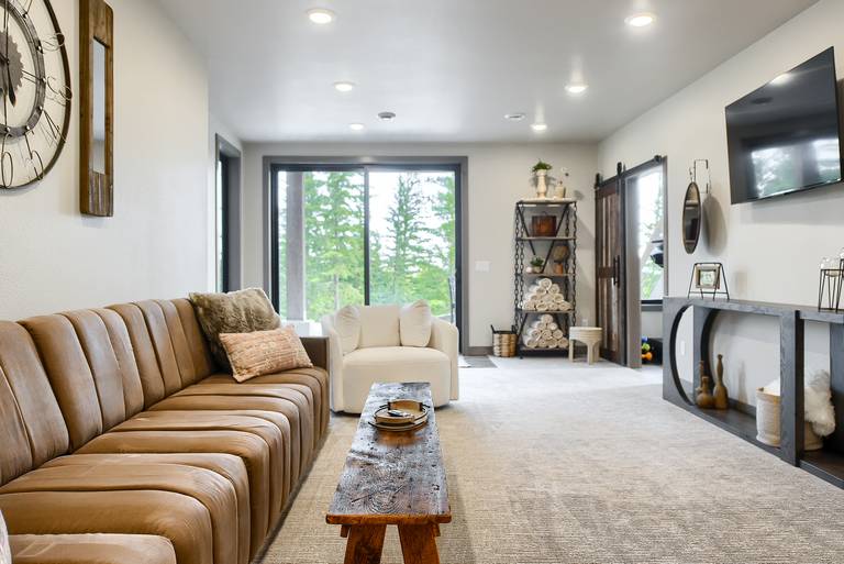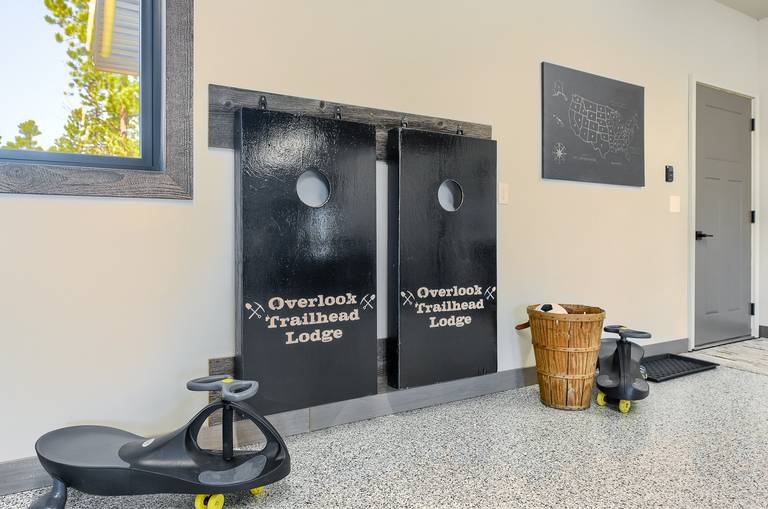 Overlook Trailhead Lodge also boasts custom furniture galore, two laundry rooms, a treadmill with views, a unique backyard area, and plenty of space for vehicles and trailers to park.