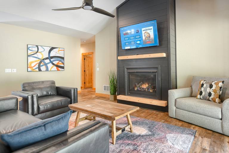 Located in a newer area of PowderHouse Pass, it's surrounded by plenty of trees and a great area.<br/>A relaxing atmosphere with most everything you need. Unit was clean,fresh, and quite new. Hot tub was a plus after a day of hiking and skiing. The walls were built a bit thin so you hear more across the entire unit including next door. The driveway is at slightly steep grade, so if there is snow be cautious on entry and exit.