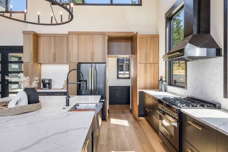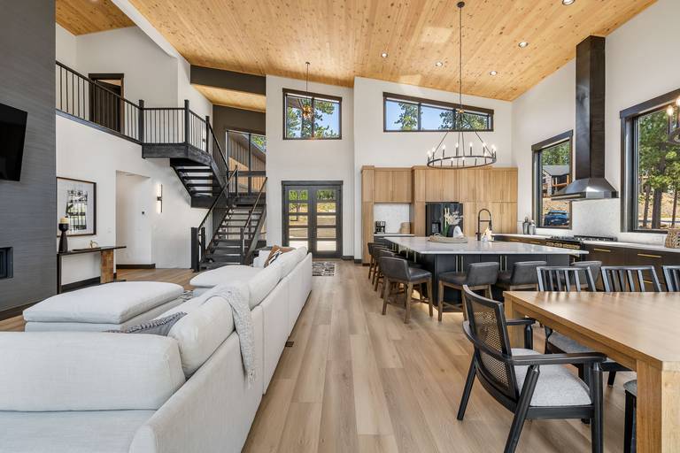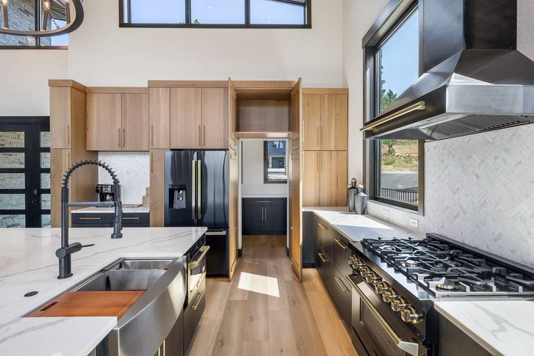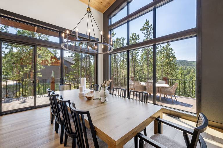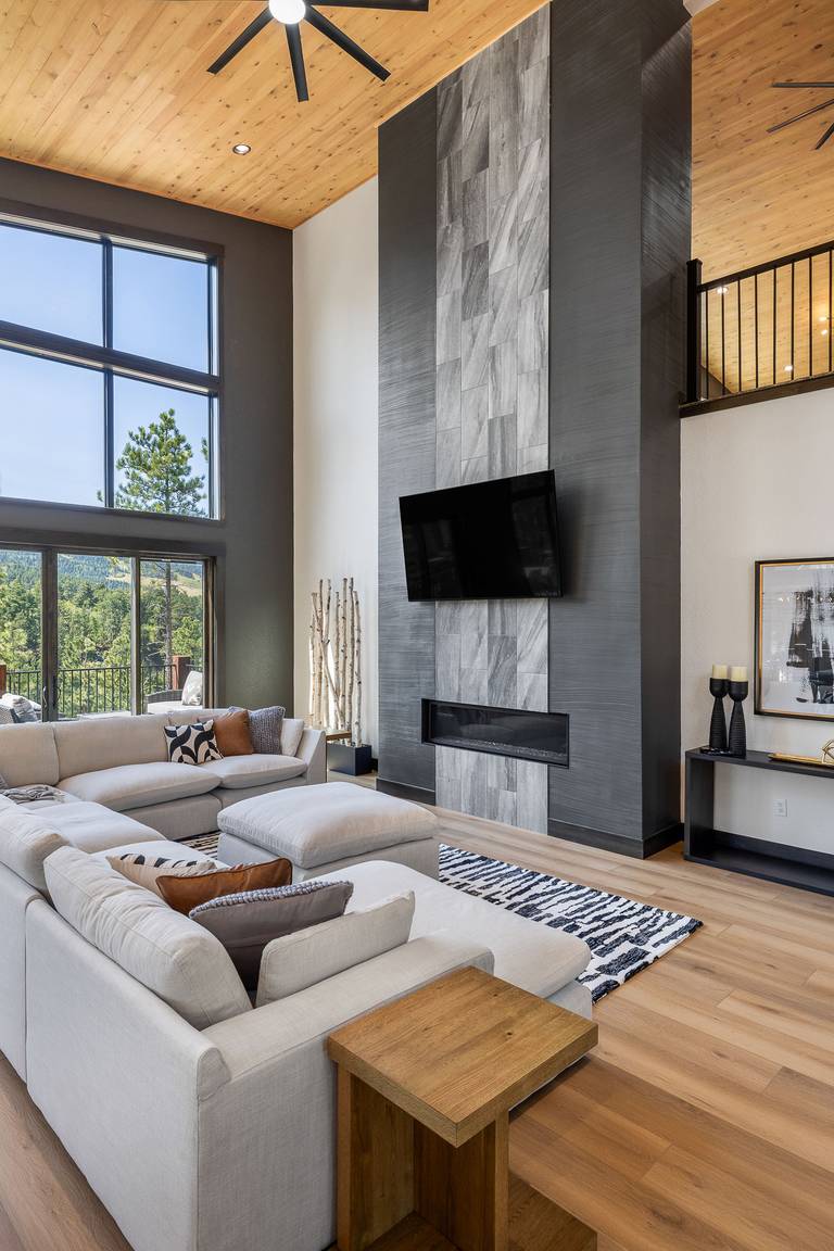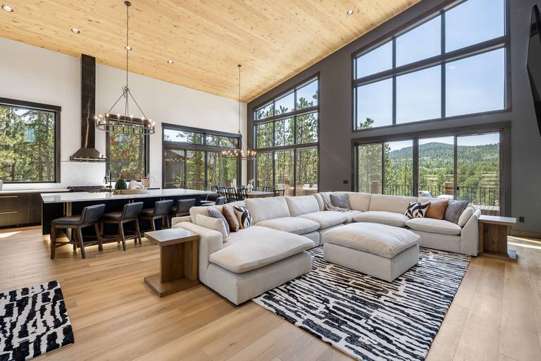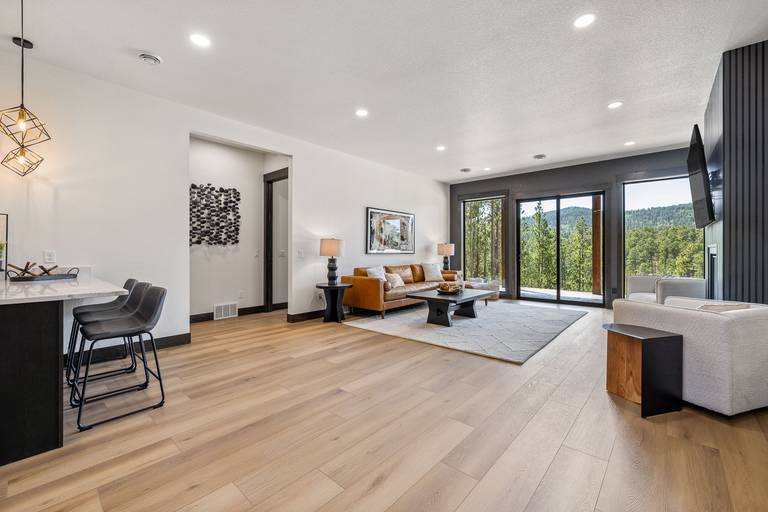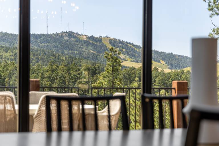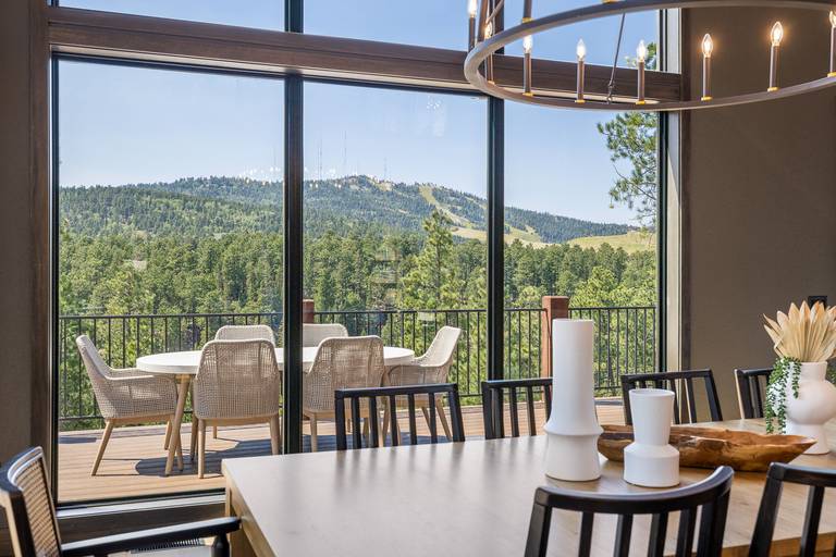 Step inside to a breathtaking two-story great room where the kitchen, dining, and living areas flow seamlessly together. Floor-to-ceiling windows frame incredible panoramic views of Terry Peak and the Black Hills, creating a space that feels both grand and inviting. The open-concept design makes entertaining easy, while the expansive dining area provides plenty of room to enjoy meals together.