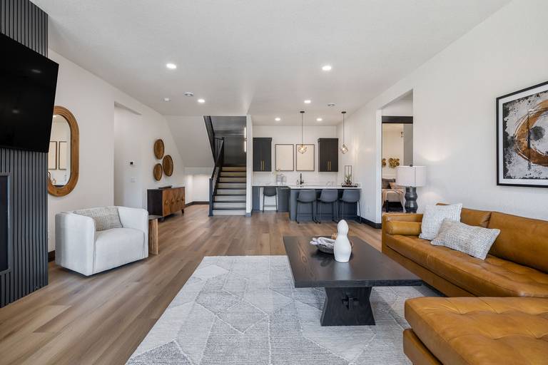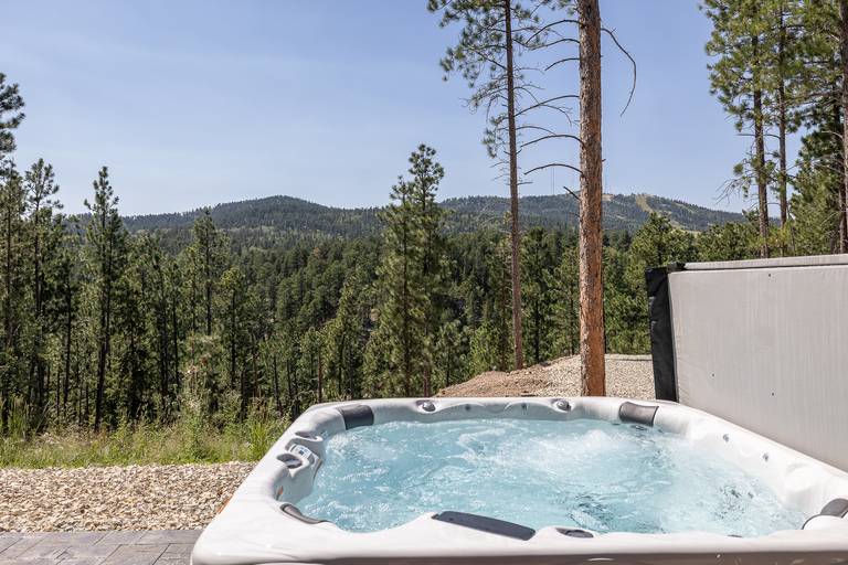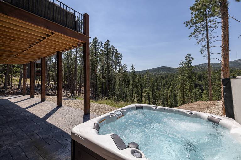 On the lower level, you’ll find a second living area with a cozy fireplace, ideal for movie nights or relaxing after a day of exploring. From here, walk out to a spacious patio featuring a private hot tub, where you can unwind under the wide-open South Dakota skies.