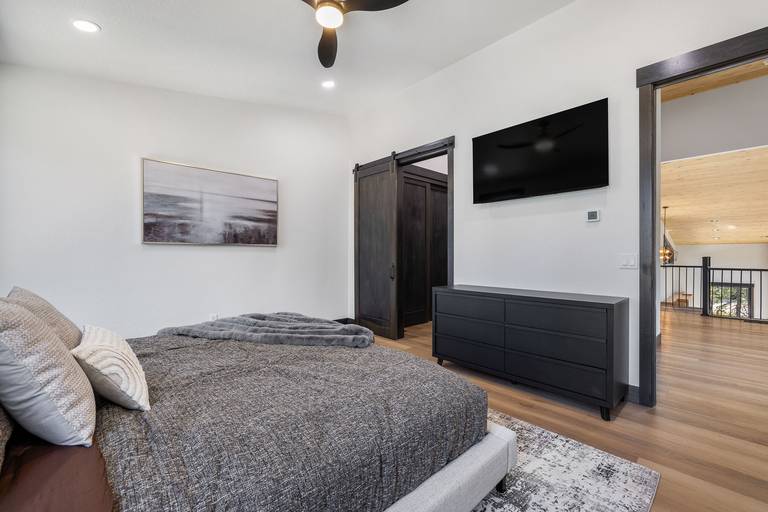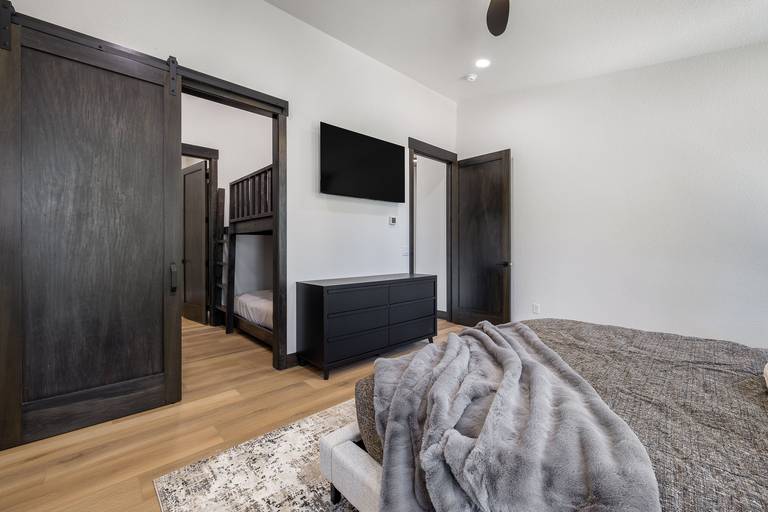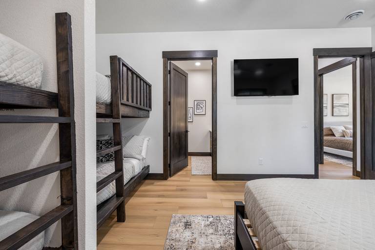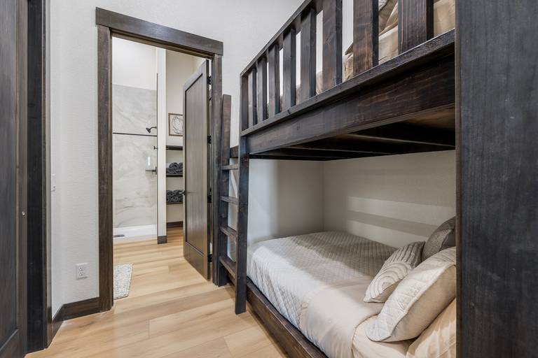 Lower Level - King Bed with 2 sets of Double Bunk Beds (4 total beds) and Ensuite Bathroom