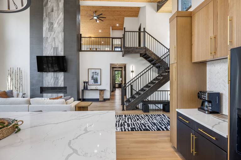 Upstairs, a large open loft extends the living space and opens onto its own deck, perfect for morning coffee or stargazing at night. Outdoors, a wrap-around deck offers even more opportunities to soak in the stunning views.